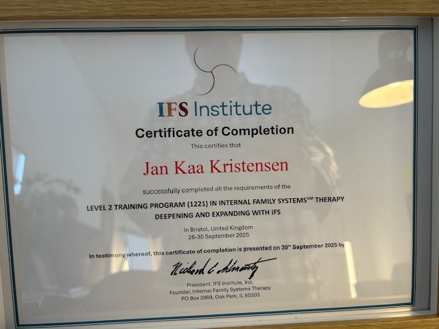 I am a licensed psychologist and specialist in clinical psychology, with many years of experience working therapeutically with individuals, couples, and groups. I am trained in Internal Family Systems (IFS) at Level 2 and use IFS as an integrated part of my clinical work.