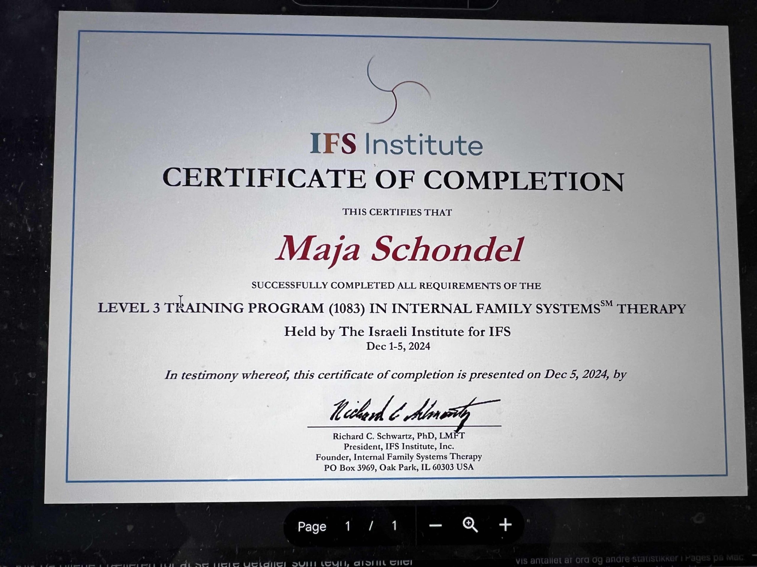 Siden 2020 har jeg fordybet mig i IFS personligt, fagligt og formidlingsmæssigt og jeg er forfatter til et kapitel om IFS i antologien "Spiritualitet og psykologi" på Gads Forlag.